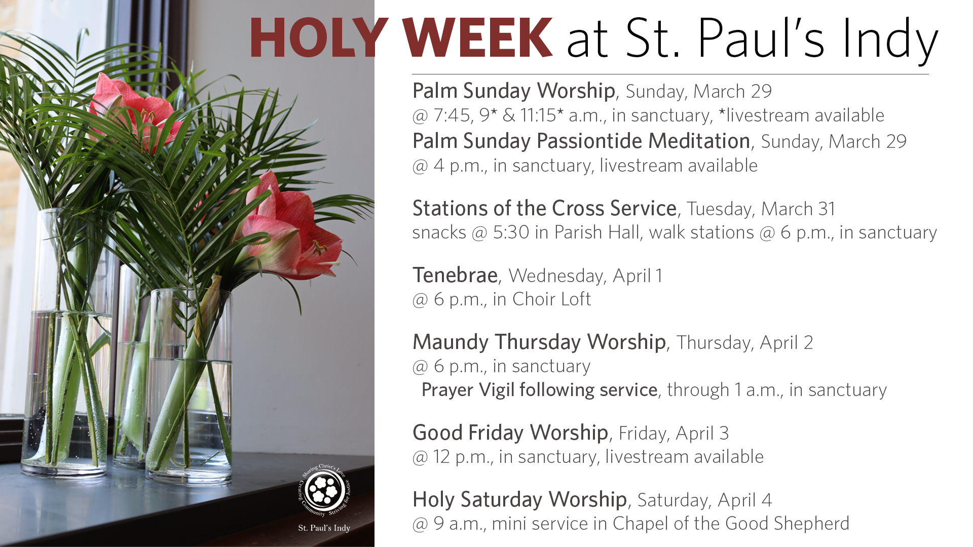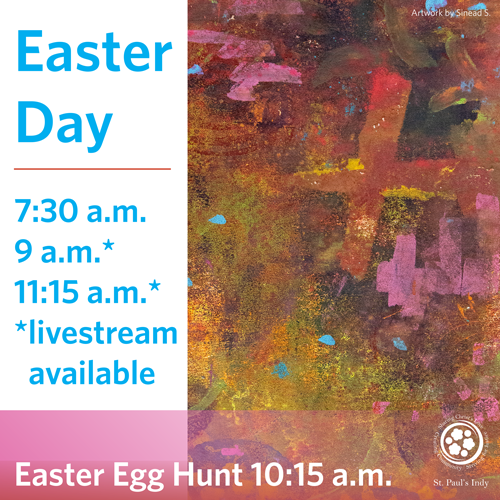 St. Paul’s office will be closed the week following Easter, from Tuesday, April 7 through Thursday, April 9, allowing time for staff and clergy to rest and recharge. There will be no worship offered on Wednesday, April 8. The office will reopen on Tuesday, April 14.