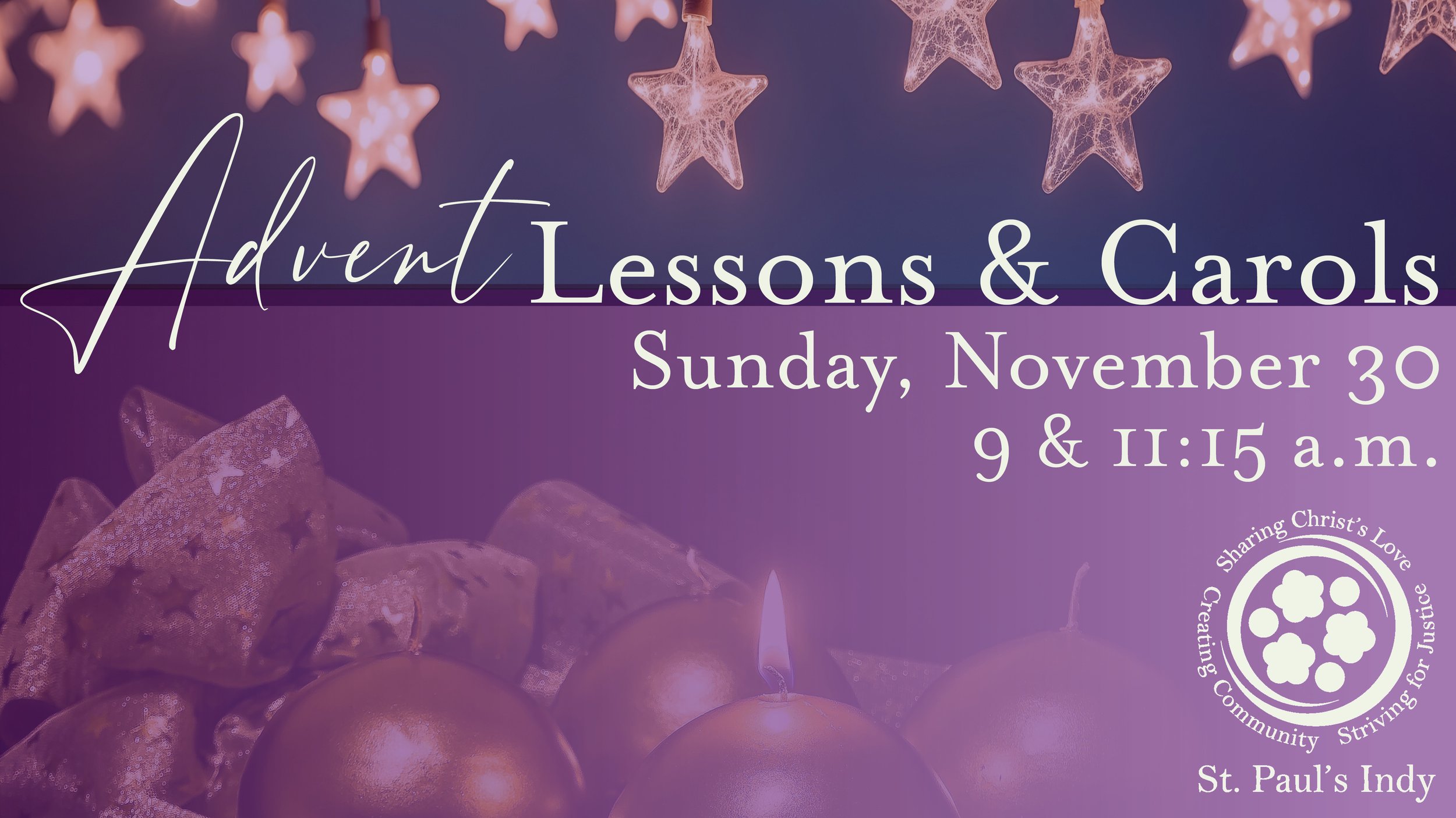 Launching the beginning of a season of anticipation and waiting, St Paul’s Choir offers its annual tradition of Advent Lessons & Carols, highlighting the stories, carols and hymns for the season before Christmas. Music includes compositions by Paul Manz, Frank Boles, Joel Martinson, George Guest, Judith Weir, John Scott and Johann Sebastian Bach. All are invited to attend Lessons & Carols, offered at 9 & 11:15 a.m. on Sunday, November 30 (both services will also be livestreamed at stpaulsindy.org/youtube and stpaulsindy.org/facebook).